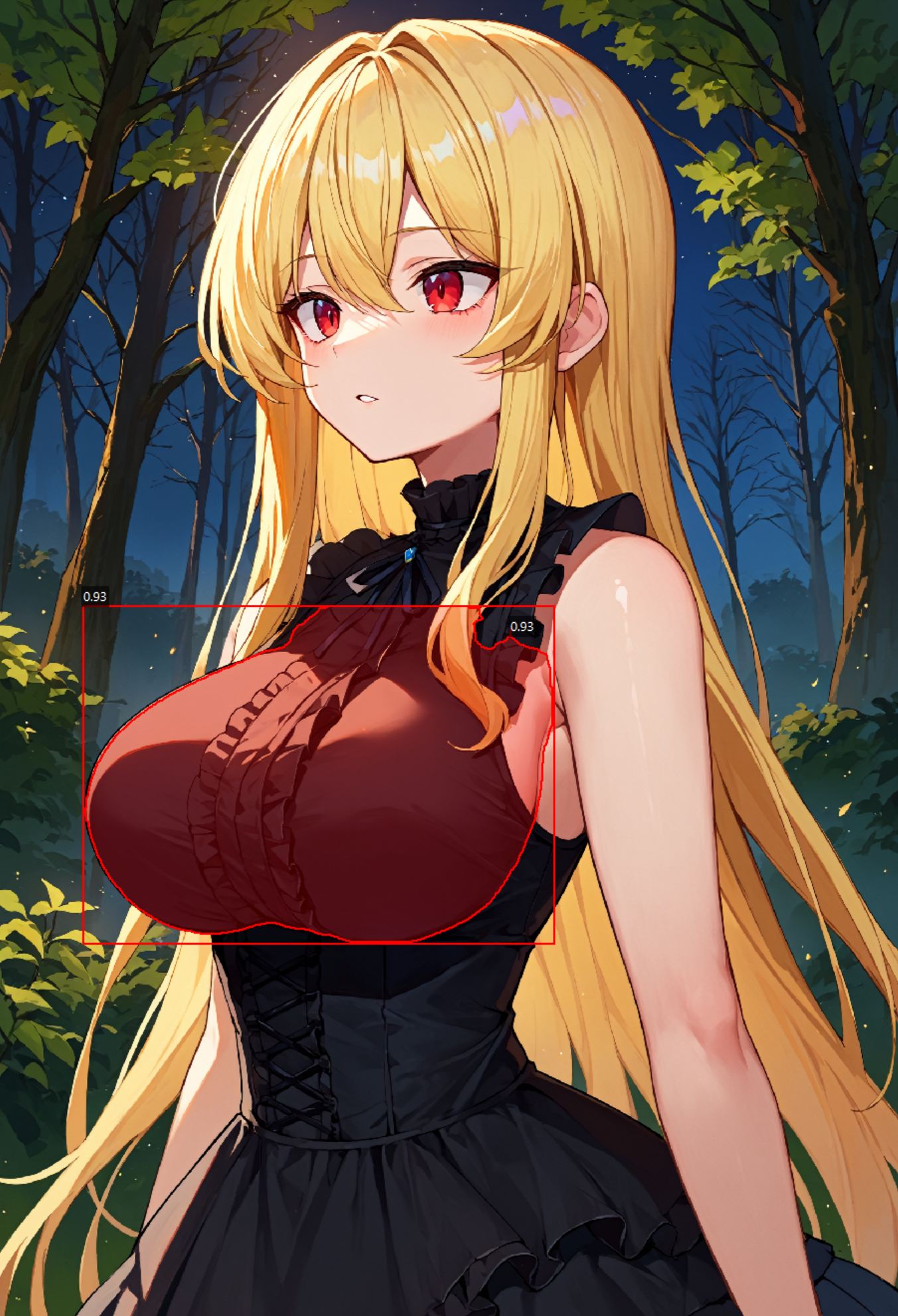 | Anzhc Breasts Seg v1 1024n.pt | Breasts: illustration | 0.742(box),0.73(mask) | 0.563(box), 0.535(mask) | 1(breasts) | ~2000 | 1024 |
