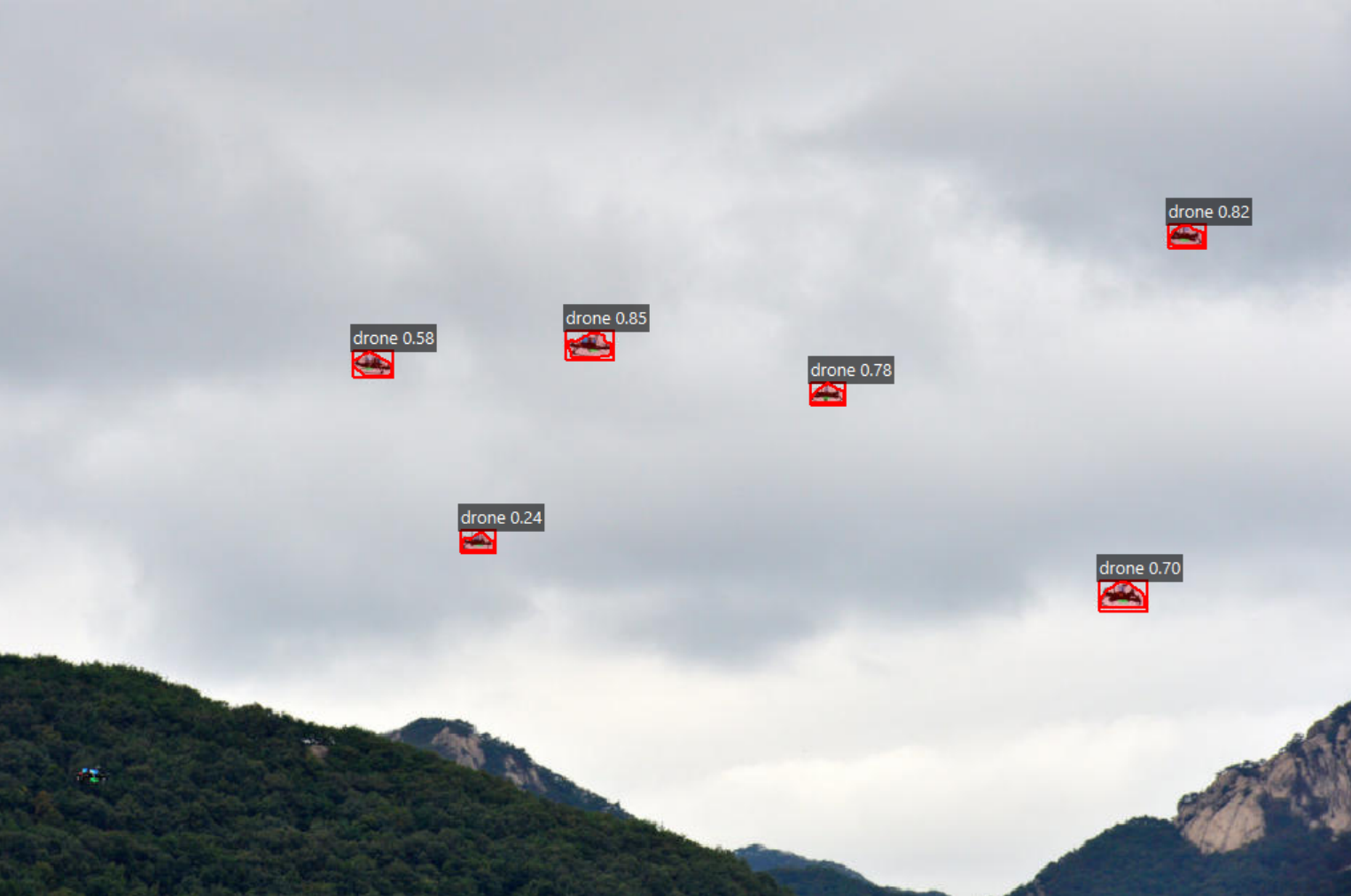 | Anzhcs Drones v03 1024 y11n.pt | Drones | 0.927(box) 0.888(mask) | 0.753(box) 0.508(mask) | 1(drone) | ~3460 | 1024 |